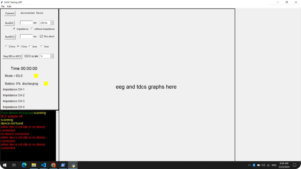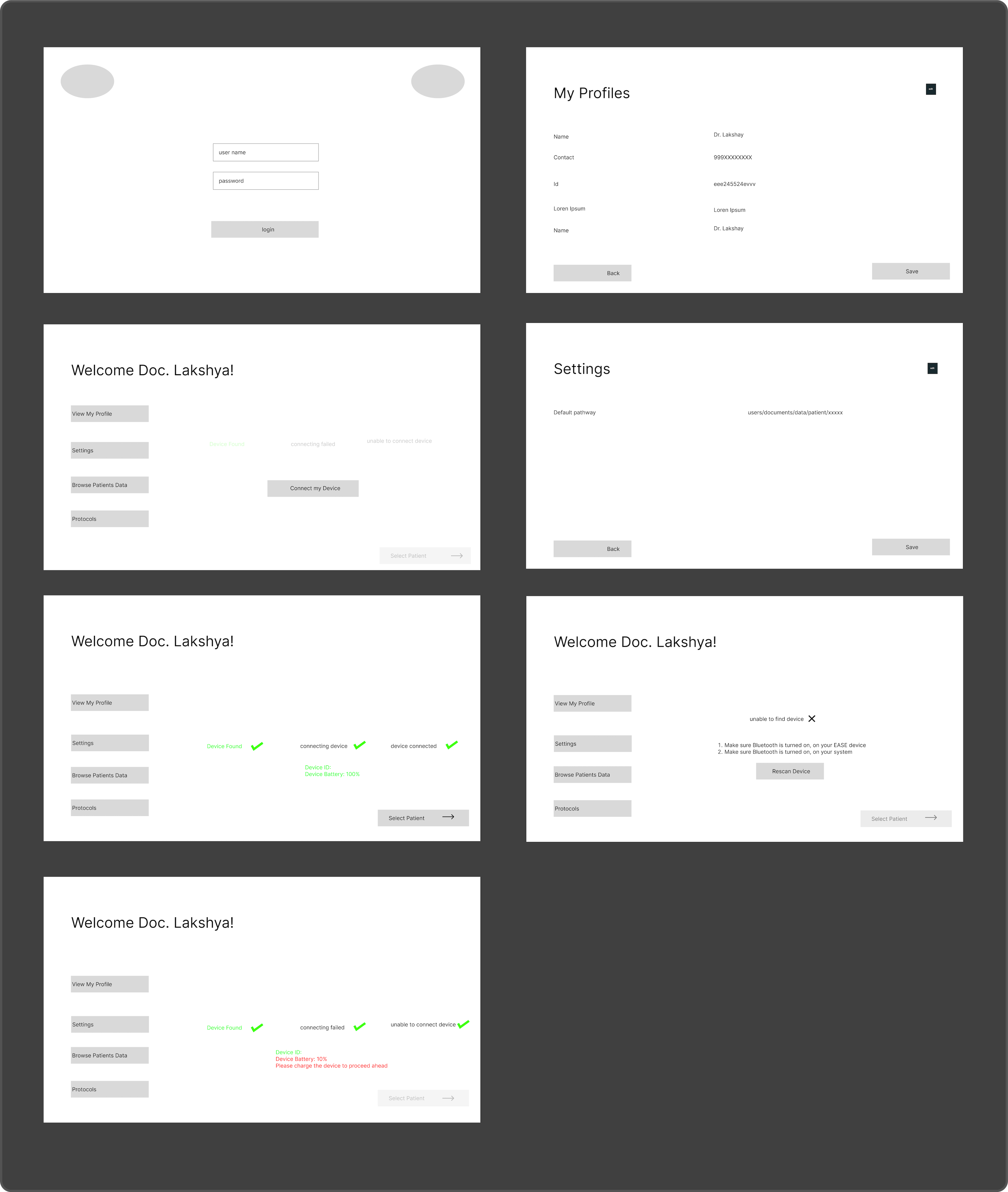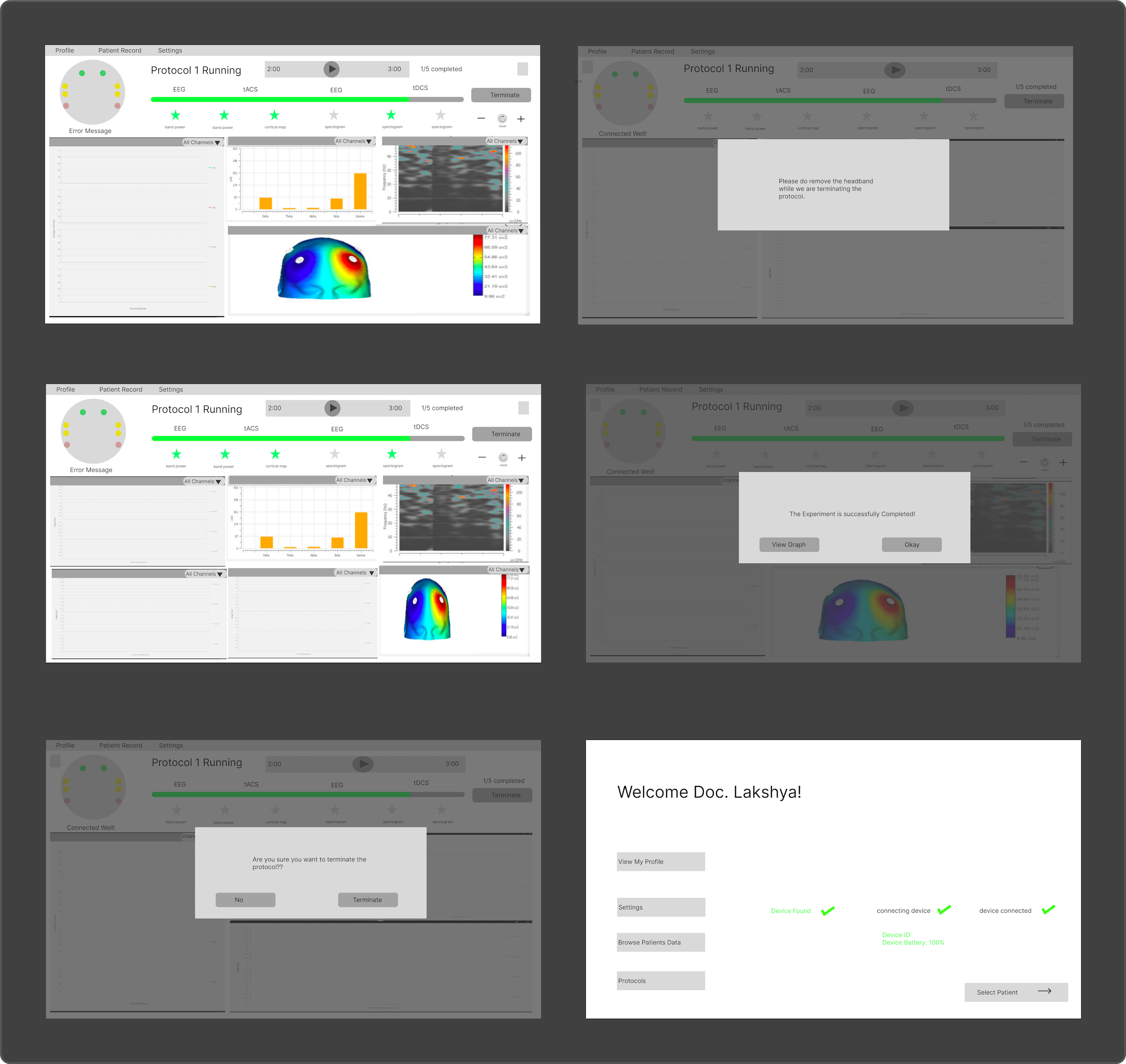 Users wanted to explore the platform while the session on a particular patient was being run. At the same time, they wished to view the current status, implying the need of our user base to keep switching between tasks while the main task of the experiment was undergoing. We cater to this pain point, we added a mode section to our design that displayed idle, connected, tDCS or EEG at the top. This feature made it easy for the doctors to explore the platform while simultaneously monitoring the experiment.
