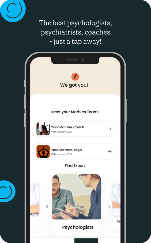 Marbles Buddy Call- Our clinical psychologist reached out to the users through a weekly call to talk about their journey, progress, and challenges users were facing while using the application. The primary purpose was to provide some form of companionship & support to the user in their restorative journey.